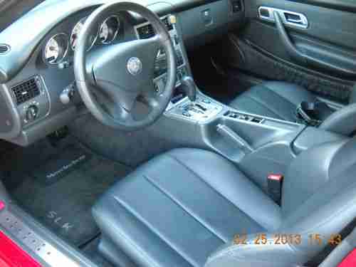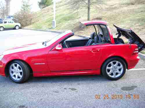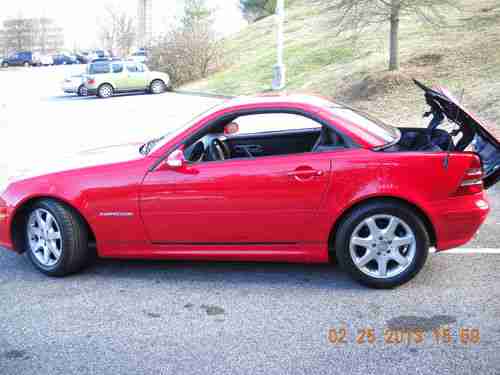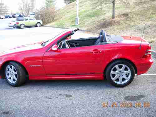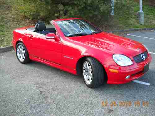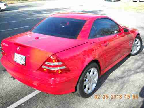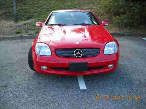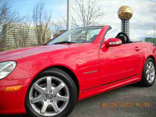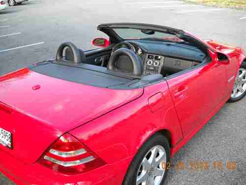 A 2003 MAGNUM RED MERCEDES BENZ SLK230 KOMPRESSOR ROADSTER, 20,682 ORIGINAL MILES. LIKE NEW, GARAGE KEPT , SMOKE FREE AND DEALER MAINTAINED (KNOXVILLE MERCEDES BENZ). ABSOLUTELY NO MECHANICAL ISSUES, EXCELLENT PAINT, EXCELLENT INTERIOR, NEW PERFORMANCE RATED TIRES, WINDOWS TINTED LAST FALL...I WOULD SAY IT'S STILL "NEW", BUT EBAY RULES PROHIBIT IT! PICTURES DON'T DO IT JUSTICE, CRAPPY CAMERA AND TOO MUCH SUN!