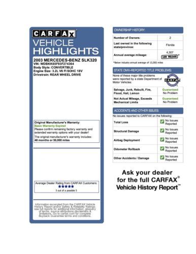 2003 Mercedes Benz Slk320, 47k Miles, Mint Condition,hardtop Convertible,fl Car on 2040-cars