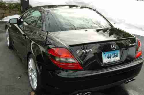 2006 Mercedes SLK55 AMG, 47k miles. blk/blk, power hard top, 7sp auto, new front rotors (very expensive), all service up to date. Includes multi CD, Bose sound system, satellite radio and bluetooth, navigation,"AirScarf" leather interior, power seats, windows & door locks, keyless entry and IR drop top from outside car, OEM windblock, rain sensor wipers, garage door opener, 2 key remotes, and original sales brochure. 0-60 in 5 sec. The car is a rocket. Clean title, and in the interest of transparency, the car is financed. Email if you have questions. Car is for sale locally, so this auction may end early.