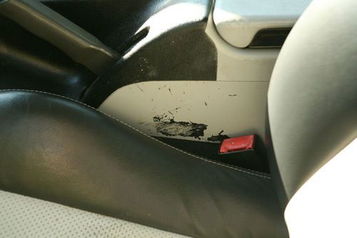 The SLK 230 has dings, scratches and fading of the rear bumper paint. The interior seats has some stitching that has come loose. The radio does work but the display needs to be fixed.