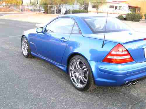 HI THIS IS A 2003 MERCEDES BENZ SLK32 AMG WITH 76,870 THAT IS IN VERY GOOD CONDITION AND A VERY FAST CAR. THE CAR HAS PRETTY MUCH POWER EVERTHING, WITH SEAT HEATERS, XENON SELF LEVELING LIGHTS, AND THE STAGGERED 18" AMG CHROME WHEELS. THE RESENT SERVICE DONE TO THE CAR WAS MERCEDES BENZ B SERVICE, WHICH WAS OIL CHANGE, ENGINE AND CABIN AIR FILTERS REPLACED, WIPER BLADES, FUEL FILTER, SPARK PLUGS, TRANSMISSION SERVICE, AND COOLANT FLUSH. THE ADDITIONAL SERVICE DONE AT THE B SERVICE WAS ENGINE AND TRANSMISSION MOUNTS REPLACED, LOWER CONTROL ARM BUSHING AND BALL JOINTS REPLACED, FRONT SHOCKS, STEERING SHOCK REPLACED, ENGINE BELT AND IDLER PULLEYS REPLACED, VALVE COVER GASKETS REPLACED, AND THE HOOD SHOCK WAS REPLACED. THIS CAR DOES HAVE A RESTORED SALVAGE TITLE SO IF YOU HAVE ANY QUESTIONS FEEL FREE TO EMAIL ME THANK YOU.