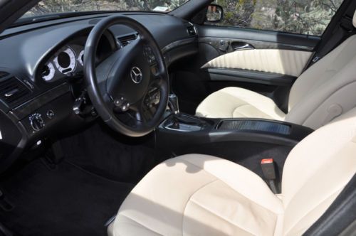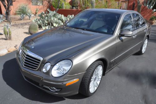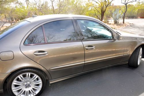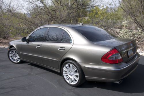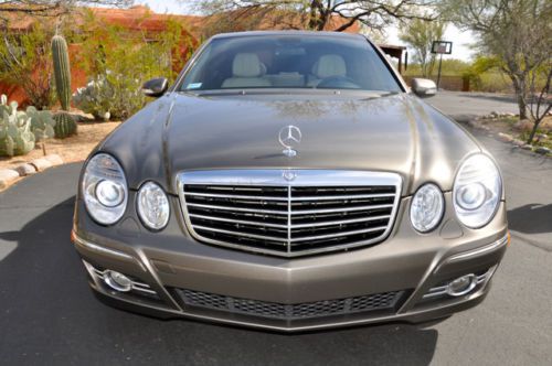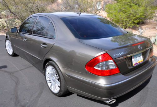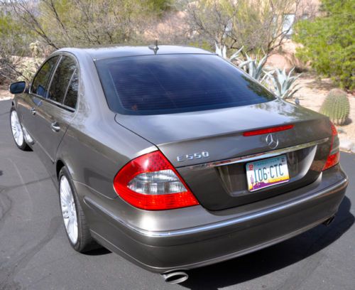 Stunning Iridium Grey color, gently used Mercedes E550 four-door sedan, with Black/Sahara Beige leather and Birds-Eye Maple Wood Trim Interior. Original owner, garage kept in temperate, desert climate. Very well maintained. All maintenance records available (upon request). This is a head-turning, high-class vehicle featuring premium luxury package. Guaranteed to impress both inside and out. It's not only pretty, it's powerful. The high-powered, 5.5 liter, 32-valve aluminum V8 engine will let you know you're driving a Mercedes.