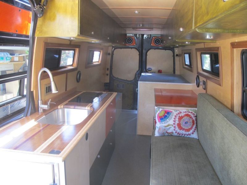 cabinets with marine grade push/pull latches. Pull out dual bike garage with led light strip. Full sized stainless undermount sink with 6' custom Black Walnut / Bamboo counter top.