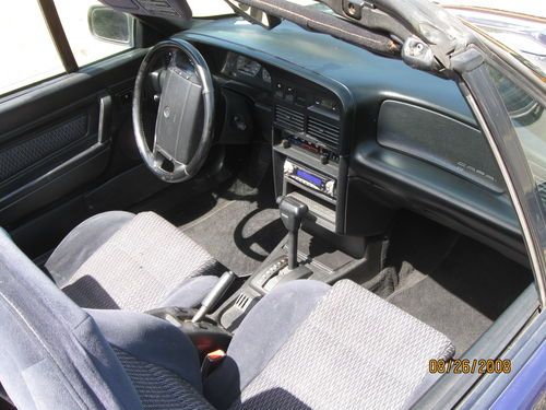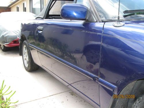This is a 1994 mercury Capri convertible The 1994 had the lowest production numbers and is one of the best years for the Capri it has Duel airbags 4 wheel disc brakes , this car has a one year only color of Cobalt blue this color was only offered in 1994 in a bright sunlight it has a purple hue to it real rich color . This car runs real nice has good oil pressure and the engine is real peppy,It has an automatic transmission but I think it needs work or a rebuild as it hesitates to shift from 2nd to 3rd it is still drive able but the tranny will need service the car has had a previous repaint but it was a low end job as there is runs in the paint. The body is rust free but does have dings and some minor dents , the interior is solid and clean not bad for a 20 year old car all the gauges work as well as the windows the A/C does not work it turns on but is not cold un-like the early model capris the 1994 has the new R134 Freon so its a cheap fix to repair.it has an aftermarket radio C/D player the radio works but I could not get the c/d to work The convertible top is a couple years old and is nice and solid these cars are excellent on gas and real fun to drive the 1994 year is the most collectible year .The car has a clear title it is Not registered at this time if you are a California resident I am selling this car without a California smog cert. I have not had it smog but I am sure it would pass as it is totally original and intact I am selling this car cheap AS-IS buyer needs to pick up in San Diego Calif.