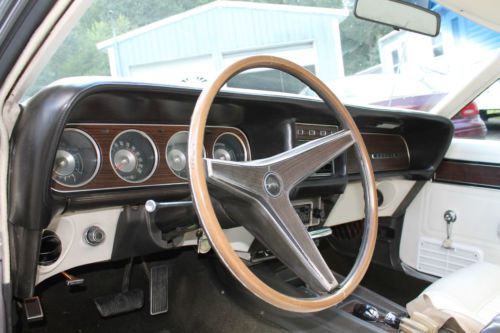 1969 Cougar standard 351w 2v FMX automatic with De’ core interior. Very nice driving Cougar. You can cruise down the interstate at 75 mph with the AC on. Full history: The Cougar was sold new at Adrian Ford mercury dealership in Adrian Michigan which is still in business (Dave Knapp Ford-Lincoln). The original buyer owned the local funeral home and purchased a new car every year. Kay worked at the dealership and fell in love with the Cougar when it was unloaded from the transporter. Knowing it would be traded in next year she made arrangements with her boss to start taking money out of her pay check to purchase the Cougar when it came back to the dealer the next year. In 1970 the Cougar was traded in and Kay completed the purchase. After purchasing the Cougar she made a trip to the local Discount tire store and had Cragar GT wheels with BFGoodrich tires installed. The same wheels she purchased are still on the Cougar. That same year she and her husband moved to southern Colorado taking the Cougar with them. Over time the Cougar went from a second car daily driver to a weekend pleasure car. She made several trips from Colorado to Michigan in the Cougar visiting family. In 2009 Kay moved back to Michigan to take care of her mother bring the Cougar with her. After the Cougar sitting idle for two years and she no long had the resources to take care of it. She decided to sell it to me in 2011. Kay kept a detailed log book on the Cougar documenting the original 68,686 miles when I purchased the Cougar. It currently has 71,692 miles. Interior: White DE ‘core with corinthian vinyl and white levant pattern. Seats re-upholstered in the 90’s. Dash, carpet, console headline door panels all original and nice condition. Three spoke rim blow steering wheel is original and works. Realistic cassette stereo. Exterior: Original medium gold metallic paint was faded and repaint lavender in the 90’s. Paint quality about a 7 with 10 being show quality. Good weekend show driver condition. A couple of paint bubbles on the driver- side quarter wheel lip and a dent in the passenger-side upper front door. Some stone chips on the front and a scratch on the p-side upper rear quarter panel. Original white vinyl top in excellent condition. No signs of soft spots or rust under the vinyl top. Chrome bumpers and trim in very nice condition. Mechanical: Engine runs good never removed or taken apart and doesn’t smoke. A little hesitation taking off when engine is cold. Could use a carb/choke kit installed. Installed valve cover gaskets in 20011 and a new water pump this year. FMX automatic transmission shifts correctly with no issues. 9” Ford rear end (open 3:00 ratio) no issues. Suspension nice and tight. Installed new KYB gas shocks and new tires in 2012. Power front disc brakes no issues. Power steering no issues. Installed one new power steering hose in 2013. Factory air conditioning with R-12 functions correctly and blows cold air. Heater and defrost system works correctly with no issues. Cowl vent is nice and doesn’t leak. All Lights and headlight doors function correctly with no issues. Sequential tail lights function correctly. Sometimes the dash lights come on and off. What it needs: The complete exhaust system needs replaced. The current system was pieced together by a Shop when Kay owned it. The mufflers are mis-matched and the system has a couple of leaks. I left it as is for the new own to install a system to their liking. At some point an automatic choke and carb kit should be install. Currently runs good the way it is, but a little hesitation when the engine is cold. |