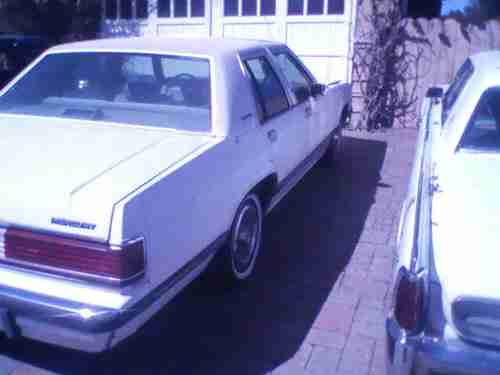 This is a 1990 Mercury Grand Marquis LS Sedan; white over white, with a gray interior, with 182,000+ miles (exceeds actual posted miles on the odometer). The car is not running at this time due to a water pump repair that was in process, a bolt broke off in the motor and the repair hasn't been made. This can be drilled out, and a new bolt put in its place. The new water pump and all parts come with the car upon sale.