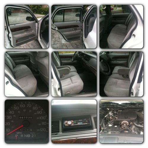 This is a reliable, powerful, safe, robust, spacious and clean car. Taxi Cab companies and Police Departments have been using those cars over and over for years, because they can get 25 to 30 MPG on the highway. Note that many people mistakenly believe that these cars are bad on fuel consumption. You will be happily surprised ! Exterior paint looks and shines like a car with half of the miles. All body panels fit and finish is great. Original glass no cracks. Very clean upholstery with cloth seats. Smoke free car. Very low mileage ( currently & exactly 67235 Miles ). 4 Michelin new tires and new battery. This car has been regularly serviced and well maintained. No warning lights. Very quiet engine. No leaks, no issues at all. Drives out great. 1 key, Owner Manual and original spare tire come with this vehicule. Huge trunk, interior looks like new, because was hardly used. Pionneer state of the art radio and CD player with remote. Carpet on driver side was replaced. Some minor scratches bearly visible and 2 small minor dents on each rear quarter panel (as shown on attached pictures) not affecting the beautiful and shiny overall look of this 8 years old gem car. We have the 3 missing wheel center caps. The tire shop forgot reset them back in place, after installing the 4 brand new Michelin tires. We noticed that they were missing upon downloading the various pictures of the car. Not to worry, they will come with the car. Clean title, meaning it is not salvage, rebuilt, flood etc.... . Should you have any questions about the condition of this vehicule, please do not hesitate to call (305) 546-3346 and ask for Raphael. You may also email us at michelevcw@msn.com. After hours and week-end calls are wellcome.
