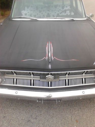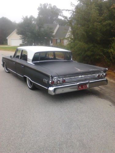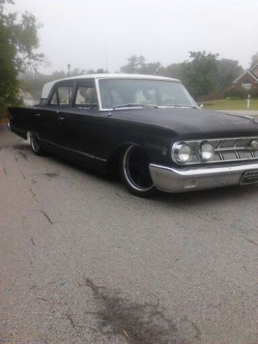 Very cool 63 Merc highly optioned car when ordered 390 V8 power steering ,power brakes ,a/c and rare breezeway pwr window only 104k miles .Has been lowered but rides good and still has plenty of travel coils in front and blocks in rear. Added staggered set of Boss riddler style wheels with 10s on rear and 8s on front with over 70% tread .Custom low gloss black paint with old school pinstriping and custom interior looks awesome and gets a ton of looks . These cars are rare and I think look better than the run of the mill Impalas and Galaxies and came with better options when new .Car runs great drive it all the time to shows and has won several trophies .Things that need attention the a/c needs charged but comes on and gas gauge never worked just watch the mileage .Engine sounds good and does not smoke or knock and has good oil pressure and stays under 180 degrees at speed .Ive installed aftermarket Flowmaster duals and Edlebrock air cleaner and run Amsoil fluids, Autometer gauges .Keep in mind this is a rust free car and ask yourself whens the last time youve seen one thanks and happy bidding ! Note car will be featured in GREASE magazine in the next few months new owner will be mailed a copy fyi .