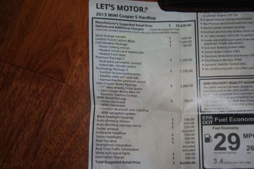 2013 Mini Cooper Hardtop S*spice Orange*jcw Pkg*6spd*nav*loaded*msrp $34,050.00 on 2040-cars