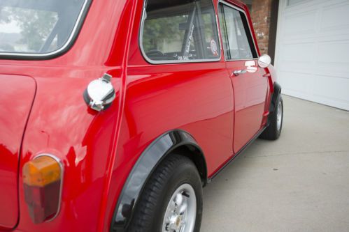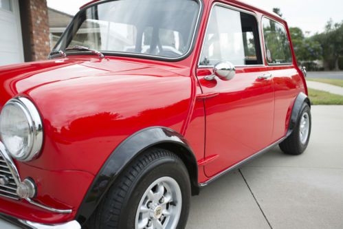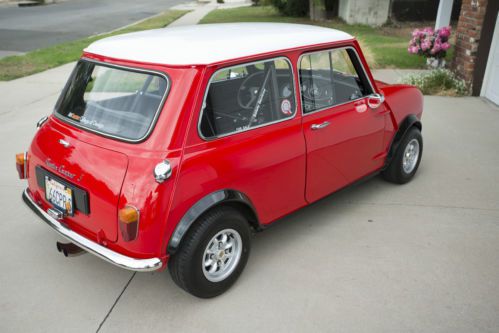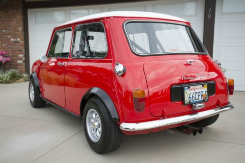 Available for purchase an ORIGINAL left hand drive U.S. delivered 1966 Austin Mark I Mini Cooper S. I purchased this car in 1998. It has all its original body panels and there was no rust anywhere on this car. Since my purchase and subsequent restoration, the car has been driven less than 4,000 miles. These miles consist of driving to car shows and rallies in Southern California where it has won numerous first place trophies. I have a British Motor Industry Heritage Trust certificate that shows this vehicle was built in September 1966 and exported to the United States as a personal delivery. I believe I am the 3rd owner and was told by the last owner this vehicle was originally sold in California. The car has been in a climate-controlled garage for the past 16 years and has never been in the rain or washed with a hose while in my possession. The car was restored over a 2-year period. It was completely disassembled and most of the original parts were painted, powder-coated or re-plated, and the body was sent out to be painted. The 1275 S motor was rebuilt to 1293cc by Graham/Heritage Garage (British Auto Specialists). Any original part removed from the car has been saved and these parts are included in the sale of this vehicle. Also included in the sale is a 2 notebook documenting the restoration with receipts along with repair reference material and various Mini Cooper related books. Please remember this is a 14 year old restoration and there are some cosmetic flaws. With this said, you wont find a more attractive, great handling, fast Cooper which has been very well cared for. My motivation to sell her is because I want to move on to other projects. The following is a summary of the condition of the car including items restored: Engine &