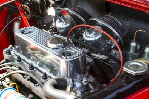 Transmission 1275 S motor was rebuilt to 1293cc; Elgin cam 003; Aluminum head custom built; Stainless steel valves; Hi/Lift 1.5 roller rockers; 2 1.5 SU carbs; K&N cone air filters; Velocity stacks; ARP studs; AE pistons; AE rod bearings; AE main; Duplex lightened timing gears; New distributor; Rebuilt 4 synchro gear box; 3 1:1 final drive; Lightened flywheel; Lightened back plate; Competition Disc; Orange Diaphragm; steel LCB header with stainless steel RC40 twin box with dual centered exhaust pipes; Suspension &