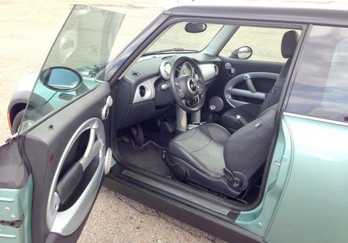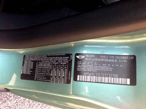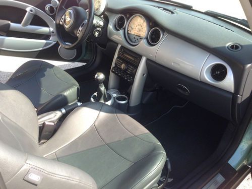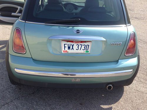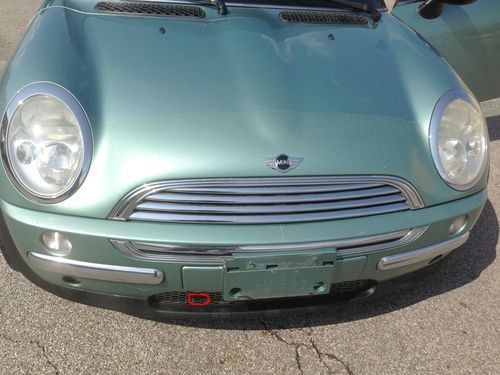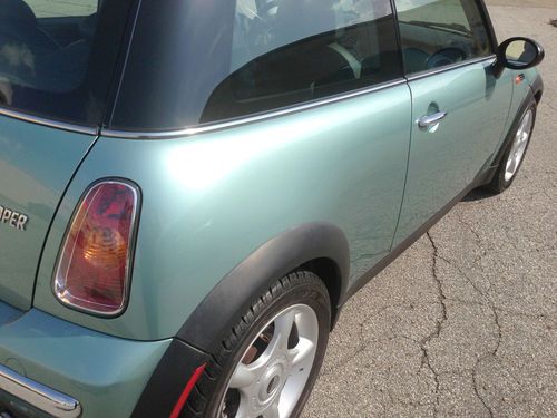 2002 Mini Cooper finished in Silk Green Metallic(color was only available in 02 and 03 pretty rare)with grey leather interior,2 owner both female non-smoker no pets very well maintained and adult owned.We have had the car for 4 years and have serviced it regularly with no expense spared,Body is in excellent condition i would give it a 9 out of 10,due to the fact the mesh insert has a quarter size gap in it(please see images) no dents dings scratches,the vehicle has a protective bra on hood fenders and side mirrors so no rock chips either.