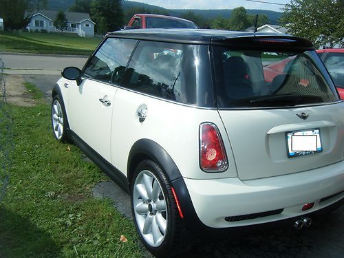 Up for auction is pristine 2005 Mini Cooper S. This car is loaded and is in near perfect condition. The two-tone paint is Black and Pepper White. The exterior is in excellent condition. The exterior has been well taken care of and the paint is still very good. The car, being 8 years old now, does show some minor wear in a few spots. It has some minor dings as well. It also has the usual stone chips, especially on the front, the larger ones were painted with factory-spec touch up paint. The paint will be included with the car. The odometer reads 64,375. I have owned the car for about a year and half, and I have put about 1500 miles on it. The oil change, from when I purchased it should be good for about another 1500 miles. But because its synthetic, the car's computer reads about 9000. As far as I know, I am the third owner. It has been adult owned since new. The car, with it's 1.6 liter supercharged four cylinder, mated to the six speed manual transmission is a blast to drive. It also gets great gas mileage. The car has the leatherette material seats. The seats look brand new, very little wear on them, especially the rears. The car has the cold weather group, so it has heated front seats. The car also has two rubber floor mats in the front, but none for the back. It has the panoramic moon roof with the sunshade. The car also has the Harmon-Kardon sound system, which sounds great. Everything on the car works just like new. AC blows ice cold and climate control works. It runs and drives like new. Clutch is good, as well as the brakes. The drive belt was replaced about 500 miles ago. It has new windshield wipers all the way around. It has some tasteful modifications to it. It has a magnetic oil drain plug from Bavarian Autosport. It also has a genuine ALTA cold air intake and an Autometer Vacuum/Boost gauge. Tires are good, they passed inspection back in May. They are continental run-flat tires. The wheels are in very good condition, though they have some minor curb rash. That was done by a previous owner. This car is nearly perfect and just great. This car does not need anything! The car has a clear title, but one lein recorded. I have the letter of lein release showing that the loan was satisfied. Don't miss out on one the best cars you will ever own! If you have any questions, please feel free to ask! Buyer is responsible for arranging and paying for shipment of the car. Non-refundable deposit of $500 is due within 48 hours of auction close. Remaining balance payment is due within 7 days of auction close. Thanks for looking and happy bidding!