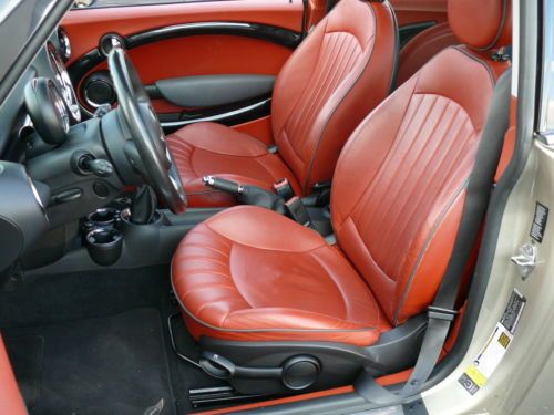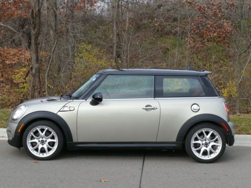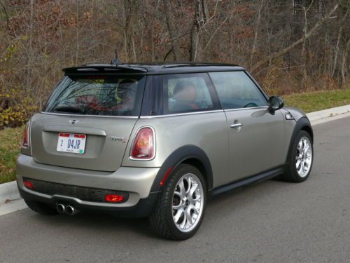 JUST 32800 MILES!!! PROBABLY THE LOWEST MILEAGE 2007 MINI S ON EBAY. ITS A MUST SEE ALMOST PERFECT LOCALLY OWNED ONE OWNER, PERFECT NON ACCIDENT CARFAX BRILLIANT SILVER WITH RED WOOD LEATHER PANORAMIC MOONROOF. 2 OVERHEAD WINDOWS FLAWLESS REDWOOD LEATHER 6 SPEED MANUAL TRANSMISSION FOR GREAT ECONOMY SPORT PACKAGE, SPORT LEATHER STEERING WHEEL, DYNAMIC STABILITY CONTROL, COOPER SPOILER, BONNET STRIPES, CHROME LINE INTERIOR ALMOST NEW TIRES AND FRESH SERVICE SERVICE RECORDS INCLUDED CALL ROGER WITH YOUR QUESTIONS AT 614 395 1487 BE GLAD TO ARRANGE SHIPPING, OR PICK YOU UP AT PORT COLUMBUS (1 MILE AWAY) HAVE FUN, ITS A GREAT MINI