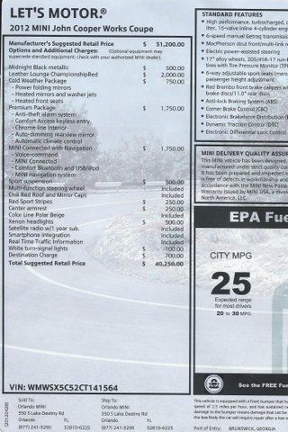 Features of the JCW Coupe on the Window Sticker Pic attached) OPTIONS: ·
