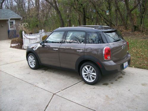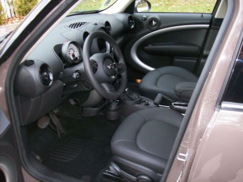 2013 Mini Cooper Countryman FWD, Light Coffee, Black leather interior. 4 cyl automatic, power windows, power locks, keyless entry, dual sunroof, am/fm/cd/with voice command, mp3 & usb inputs, navigation, auto headlights, heated seats, power folding heated mirrors, park distance control, fog lights, xenon headlights, adaptive light control. This was ordered last November, took delivery in January, only driven 890 miles. Comes with Weathertech floor liners, factory mats never used. This car is absolutely new still, smells like it just came off the truck. It was ordered for my wife who became ill and passed away before she could drive it.
