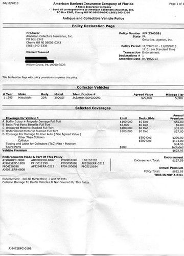 UP FOR AUCTION, 1995 MITSUBISHI 3000GT WITH F430 BODY KIT, THE CAR LOOKS SO AGGRESSIVE & IT TURNS HEADS WITH ITS SOUND & LOOKS, THE CAR WAS APRAISED & INSURED BY THE AMERICAN COLLECTORS INSURANCE COMPANY TO THE VALUE OF $29,000, THE CAR IS INSPECTED TILL END OF MAY 2014, TO WATCH VIDEO OF THE CAR DRIVING PLEASE CLICK ON THE FOLLOWING LINK http://www.youtube.com/watch?v=oG6LrTK0syY