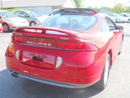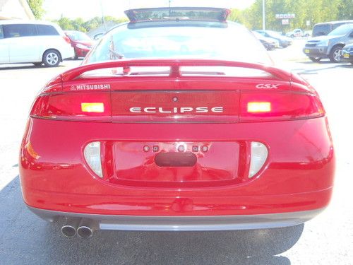 Up for sale is this beautiful 1996 Mitsubishi Eclipse GSX AWD Turbo. This car has a Clean title and No accidents! I'm not sure why Ebay isnt pulling up the Autocheck But I do have the Autocheck and Car fax if you want me to Email it to you! I probably don't need to go into a detailed description about this car because if your reading this there is a good chance your a DSM fan like me and already know everything there is to know about them. Its very hard to find a GSX with under 100k miles so take advantage of this one. It is a 2 owner vehicle that spent its whole life in Virginia. I have put quite a bit of miles on this car and absolutely love driving it. The engine sounds very strong, The transmissions shifts great and the turbo spools right up and the car takes off. The exterior of the vehicle is in great shape for a 1996. It does have its normal wear and tear (dings, dents and scratches) So I'm not advertising this car as flawless.The Interior is in unbelievably great shape though. The seats, carpets and dash look very nice and everything is stock. The tires are about 70% tred and the brakes have no pulsation and plenty of life left. The Sunroof works perfectly And does not leak! It still has the factory radio with the code and the factory power antenna does work! Every feature/option works on this vehicle. (Ac does need a charge but works). This just passed NYS inspection and has been serviced. Its rare to find a GSX Eclipse that is 100% stock and has never been modified so dont pass this rare opportunity up.