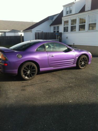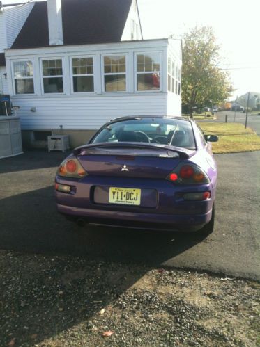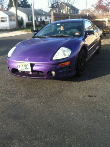 2003 Mitsubishi Eclipse GTS with custom color paint. Car has been painted with Plum Crazy Purple and it looks great! The color and custom black 17" rims really sets the car off from any other eclipse out there. Rims and tires are only a few months old. Car is completely stock other than the paint & rims. The GTS is the upgraded version of the eclipse. It sports the 3.0 Liter, V6, 24 valve engine which makes this car very quick. It has a 5 speed transmission. Car runs and drives great! The timing belt and clutch have been done not too long ago. A new starter was recently installed as well. Prior to us buying it, there was only 1 previous owner who maintained the car very well and used it mostly on the highway for commuting. Car features Leather interior, ps, pb, ac, tilt wheel, cruise control, power sunroof, and infinity stereo with JVC head unit. Only known issues is ac does not blow cold air and one seam on drivers seat needs stitching as its starting to separate. Car is being driven daily and is reliable and needs nothing but a new owner. I encourage anyone interested to come and check out the car in person. You can also call for more information (Owen - 732-575-0150) Car is also listed locally for sale so listing could end early if it sells outside of ebay. Thanks for your interest!