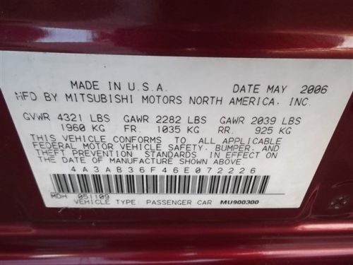 Mitsubishi galant fe low miles 4 dr sedan automatic gasoline 2.4l 4 cyl engine w(US $10,495.00)