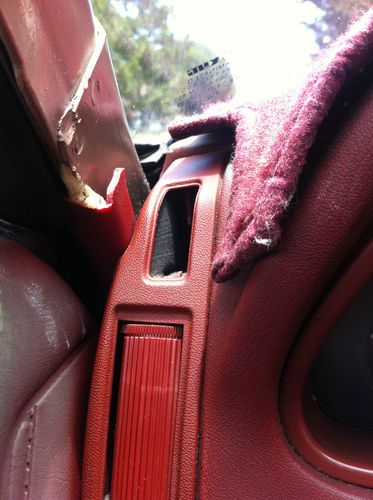 - missing plastic pillar piece (the piece that runs from dash to roof, along windshield, driver side.)