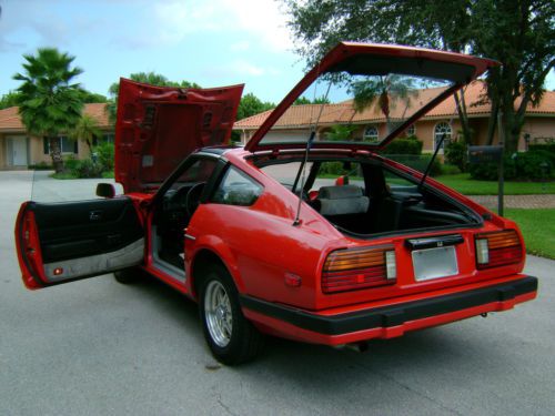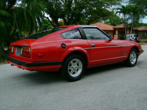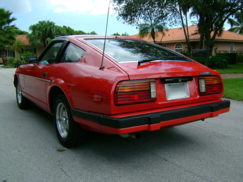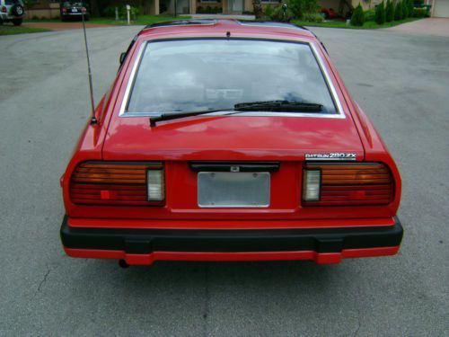1983 Datsun / Nissan 280ZX 5 speed w/ 38000 documented mi. - Last year of the great 80's generation - GETTING MORE DIFFICULT TO FIND IN THIS ORIGINAL / UNMOLESTED / RUST FREE CONDITION. This awesome 280 has an all orig. interior, down to the floor mats. It has been meticulously cared for and garage kept. For a Datsun / Nissan purist, it is definitely a great piece of history. NO ACCIDENTS / NO PAINT. All systems on point and function as new. The Orig. Red paint has an amazing 32 year old shine. It was Rust coated when new, so no corrosion. The moldings, handles, window glass, lettering, roof panels, covers, rubber seals, and all other exterior features are in super condition. The wheels are clean and the tires are like new. It drives straight down the road with zero issues. Never run through an automatic car wash and always hand washed / waxed are a great part as to why it shows so well. On the inside, the Gray interior still looks and feels great. As you can see in the pics, the seats have always been covered and the flooring still holds the orig. mats from 83. The door panels, t-top bags, t-top inserts, dash ( no cracks ), center console, faceplates, etc. are stock orig. and all of the interior buttons / switches - power windows, door locks, antenna, cruise, hatch release, fuel door, and even the clock keeps perfect time ( see pic ). It does have the orig. stereo / speakers and the sound is great. The orig. spare, tools, jack, inflator canister, bolts are still in place. Mechanically, it starts, idles, and drives smoothly as you would expect of "well-oiled" machine. The engine compartment is stock and all of the servicing is up to date - a/c, belts, tune up, hoses, coolant, thermostat, fluids all changed / maintained at the proper intervals, The 5 speed tranny / clutch shift softly and it performs on all levels. It has never been driven hard. The a/c is blistering cold and the brakes have plenty of pad left. All of the other mechanical functions are on point. A fun blast from the past that is a great conversation piece and will get you positive attention wherever you go. AutoCheck Vehicle History Report1983 Nissan 280ZX Report Run Date: 2014-08-24 17:08:43.673 EDT Report Summary