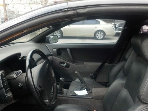 FOR SALE IS A RARE 91 T TOPS 300 ZX TT CAR IS RUNNING BUT SMOKES FROM ONE SIDE OF THE EXHAUST TURBO SEALS ARE GONE WILL NEED TO REBUILT OR REPLACE TURBO . I BOUGHT THIS CAR WITH THE INTENTIONS OF MAKING IT A BEAST JUST DONT HAVE TIME OR MONEY. BOUGHT IT ABOUT A YEAR AGO FROM A GUY THAT JUST HAD IT PARKED SINCE 05 DID ALL MAINTANCE AND BROUGH IT BACK TO LIFE CAR IS ALMOST IN PERFECT CONDITONS FROM THE INSIDE ALL LEATHER NO TEARS AND T TOPS NO LEAKS AT ALL NO CRACK WINDOWS BODY IS IN A GREAT CONDITONS JUST SOME LITTLE NICKS ON PAINT .ENGINE IS ALL COMPLETE VERY CLEAN. CAR NEEDS WORK BUT VERY LITTLE MY LOSS UR GAIN