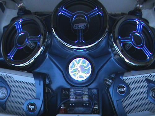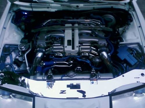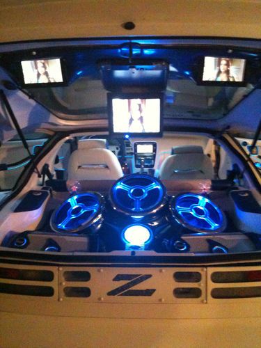Pioneer AVHP 6600DVD, Pioneer Dehp 9200 sound processor in steering wheel, Phoenix Gold 1200.1 on subs, 500.4 on doors, Pioneer center ch speaker, Kinetik battery, Stinger battery, Elemental designs SOUND DEADENING (doors, hatch and cargo area, Plasmaglow led underbody kit-w-remote, Viper 791XV-w-Has remote start, windows, locks, with 2-way paging. There is a video switching system for the indash DVD flip screen, Hatch monitors, PS2, and rear hatch cam, also wireless cam and receiver for remote control car can all be controlled through video switching system. R/C can be included for the BIN price, a 300zx body is very rare to find these days. There is also a back up cam installed just under the rear spoiler. , PS2, Street glow slim neons. Chromed out engine. Tsunami Katana RCA's and Stinger 0/1ga wiring. Also added a PG Basscube and Audio control 6ch line driver. A 60 amp Kinetik power supply so Car can run stereo without running motor as long as A/C power is available) or it will charge batteries, Added a 250amp custom SPL Alt with remote voltage knob. Also custom painted the amps to match. Neon, underbody led kit and strobes and all lighting all are remote controlled.
