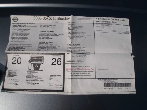 2003 Nissan 350z Performance Coupe 2-door 3.5l No Reserve on 2040-cars