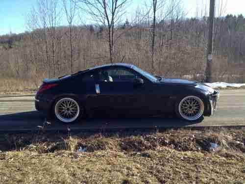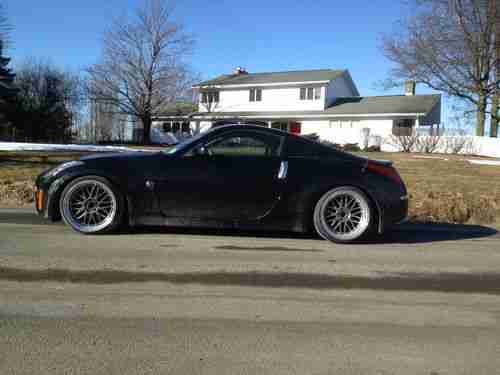 This is a 2003 350z with 4,714 actual Miles. Thats 4 digits! You will be able to validate the mileage once you look at the engine and interior up close and you will be able to tell its all new. Also I have insurance statements from previous owners with mileage and dates. This coupe has Eibach sportline lowering springs which are known high quality springs. The rims are 19" BBS replicas, not sure of exact model. Those are the only Mods on this car, everything else is OEM. The transmission is manual. This coupe's handling is amazing an off the charts! The tires on the rear are 245/35/19 and the front is 225/35/19. Let it be known that the tires are very stretched and look very sexy! You can ask for a closer pic if you'd like. The title is rebuilt from a previous incident in the passenger rear quarter to rocker panel. The plastic trim inside the pass door along the weather strip hasn't been fitted exactly right as of yet (that part of the job wasn't finished but is a easy fix with a little tweaking), as you can see in the pic. Other then that everything else was completed.