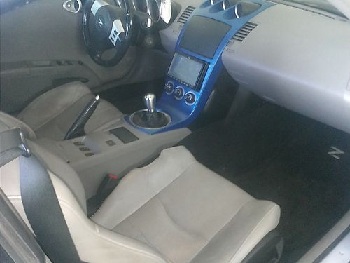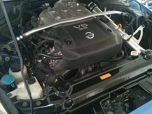 2004 350z touring 6 spd transmission with aluminum flywheel and stage III clutch kit, momentum full length polished cold air kit, strut brace,power elect heated grey leather seats, cruise control, ice cold ac,car has always had Mobil 1 synthetic 5w30 motor oil, 18 inch tires and rims less than 3 k on them ,6 in cd/dvd/camera stereo with kicker speakers, car is a flat Monterrey blue with black trim , carbon fiber hood , very quick car has low geared rear diff, and a short throw shifter runs and drives great!!!