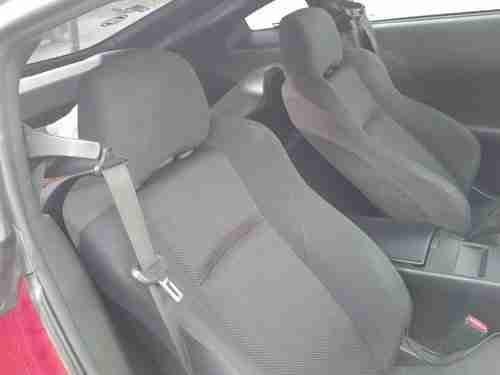 Interior is black with cloth seat. good shape except for a small tear in the drivers seat