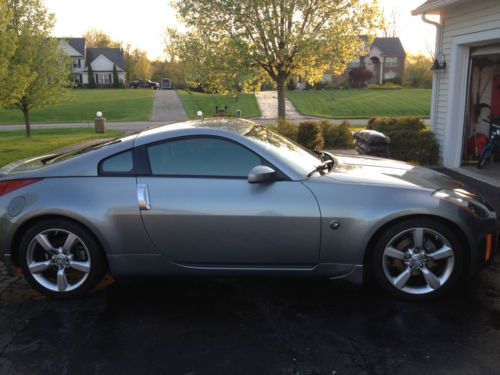 2005 Nissan 350Z Coupe Enthusiast Metallic grey in color (Silverstone Metallic) with black cloth interior. Automatic Transmission - 5 Speed Shiftable. 3.5L V6 - 287 HP. 17-23 MPG. Speed-Proportional Power Steering. Air Conditioning, Power Windows and Locks. Heated Mirrors, Keyless Entry, Cruise Control and Universal Remote Transmitter. CD, Bluetooth Stereo Unit with Built In Monitor with Back Up Camera. Low milies - 55,760 miles. Adult owned, non smoker. 35th Anniversary OEM wheels. Rear OEM spoiler. Dealer maintained. Car cover included. Car has been stored winters. Great car, no issues. Would sell to my best friend. Clear Michigan title.
