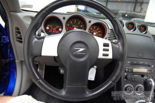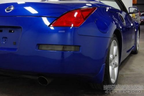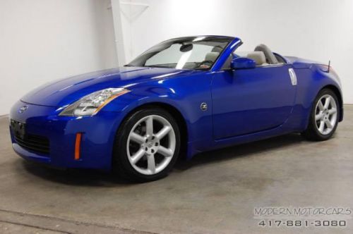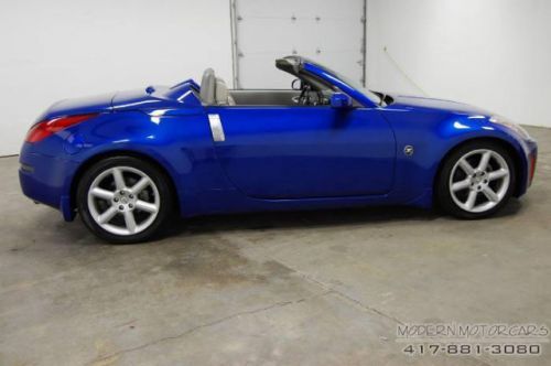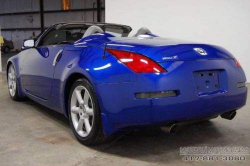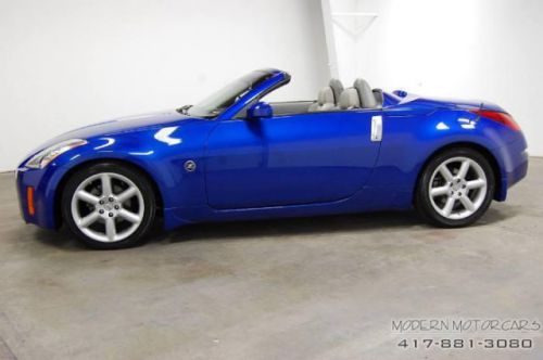 2005 NISSAN 350Z TOURING ROADSTER WITH ONLY 29K MILES. LEAHTER/HEATED SEATS, AUTOMATIC, KEYLESS ENTRY, BOSE SOUND, ALMOST NEW TIRES, POWER TOP. ALL KEYS AND BOOKS INCLUDED. VERY CLEAN ROADSTER THAT IS A BLAST TO DRIVE. BLUE PAINT IS HEAVY IN METALLIC SO PICTURES ARE CLOSE BUT THE COLOR VARIES IN LIGHTING A BIT. DEFINITELY GRABS ATTENTION. CALL 888-615-2538 TODAY TO GET MORE INFORMATION OR TO BUY THIS VEHICLE TODAY. MODERN MOTORCARS IS OWNED BY DON HUNSAKER. WE DO TAKE TRADES. MATTER OF FACT, WE WANT THEM WE OFFER FINANCING. WE CAN BEAT MOST RATES/TERMS WE HAVE WARRANTIES AVAILABLE ON EVERYTHING WE SELL WE WANT YOUR VEHICLE EVEN IF YOU DON'T BUY FROM US MODERN MOTORCARS IS FAMILY OWNED AND OPERATED ALL PICTURES AND A HISTORY REPORT ARE AVAILABLE AT WWW.MODERNMOTORCARS.COM WE ARE LOCATED 3 MILES SOUTH OF SPRINGFIELD ON CAMPBELL/160 HWY AT CC HWY. JUST 2 DOORS DOWN FROM GODFATHERS PIZZA