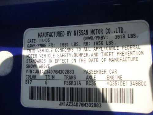 VIN (Vehicle Identification Number): JN1AZ34D76M302883