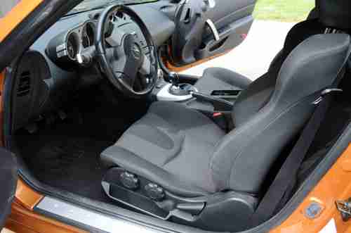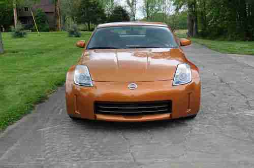 Very beautiful 350Z. Color is Lemans Sunset (most people would call burnt orange). The only dings I have noticed are some curb marks on rims from previous owner. The dealer I bought it from was going to remove them but my transport driver picked it up early. I bought it with 7000 miles on it and have put 10,000 miles on it. The reason I am selling it is to buy an old muscle car. This Z is fast with 300hp and drives and handles superbly. The steering is crisp and precise. The car is a non-smoker.