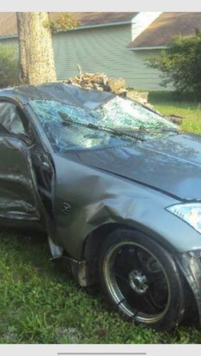 This 350z was wrecked on a rainy road a few months back. The car starts up and runs beautifully. It shifts into every gear and drives around the yard. The struts, radiator, air condenser, rear differential, transmission and engine are in great shape. the side air bags in the roof and the seats are deployed however the dash and steering wheel bags are fine. the rear window and the back quarter windows and the drivers window isn't broken. the hid projector beams still work. the miles on the car is 39,000 miles. There is a ton of parts that can still be used.This car has no warranty and is sold as is. let me know if you have any questions.