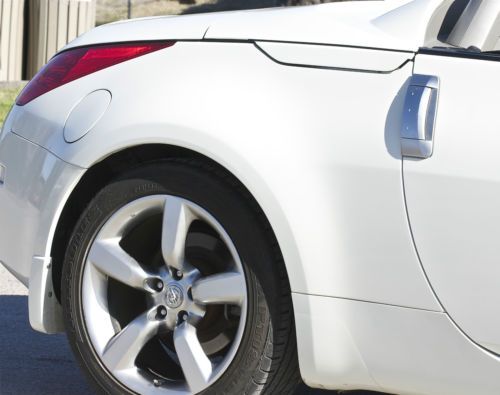 Super clean, all-original car. You will get compliments on this Z nearly every time you drive it. Car is currently in San Diego, CA, and will be in Sedona, AZ, after March 1. Buyer must pick up the vehicle or make delivery arrangements with the seller. No shipping. This car is easy to handle and shift. Super fun to drive. Low-mileage 2006 Nissan 350Z Roadster convertible is in the amazing Pikes Peak White Pearl color that always reflects the light in a unique way. The body is in excellent condition as the pictures show. Price includes installation of a brand new convertible top with glass window at my cost of $1,100. Buyer can select between a black top or blue top. Power top goes up or down automatically quickly at the push of a button and disappears when down. Excellent power from the manual 6-speed stick shift 3.5 liter V6 engine, which delivers 300HP but still gets 20.5 to 26 mpg. Never in an accident. Clean CarFax report. Clear title in hand for fast, easy transaction. At 53,305 miles, this car was sold as a Nissan Certified Pre-Owned Vehicle after being given a full Nissan overhaul service to qualify. Since then, it has only been driven by mature owners averaging just 4,000 miles a year. Slight negatives would be grey leather interior has some wear on driver's seat under where you sit; slight curb rubs on a few spots on alloy wheels; wear marks on armrests and interior fascia; and small curb rub marks on bottom front; same items you see with most of these Zs. Tires will need to be replaced in about 5,000 miles. Runs with the larger 245/45ZR18 tires in the back and 225/45ZR18s in the front. A new set of Kumho tires is about $650 installed. Has a superior quality Bose sound system with 6-CD changer in the dash. Power seats heated 2 ways, plus power door locks, windows & mirrors. Has 18-inch alloy wheels. Xenon HID super bright headlights. Fuel tank is 20 gallons. Great opportunity to get an unmodified Nissan 350Z Roadster in one of the most desirable colors with the stick shift, the only way to drive a sports car. Skip all the other Zs with owners like race car drivers, salvage titles and uncertain modifications. This one is all original. Fantastic value in this car for the money. Get the look and feel of a vintage Porsche with all of the amenities, comfort and MPGs of a modern car, plus the low maintenance costs and cheap insurance rating of a Nissan. This era 350Z is one of today's best sports car values. |