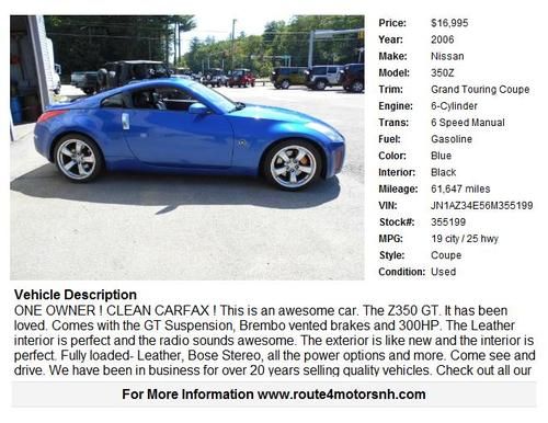 Used nissan 350z 6 speed manual 2dr coupe sports car import coupes we finance v6