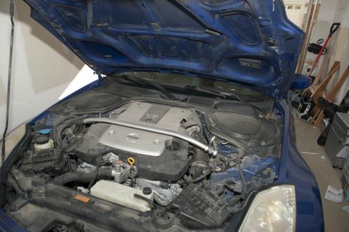 2007 Nissan 350z project car. I parked this car up due to work travel and starting driving another vehicle. After winter, the battery died so I didn't bother to get a new one because I wasn't driving this car in snow. A year has gone by now and I decided not to start the vehicle since the fuel in the tank needs to be drained. Before I let the car sit, there was a check engine light from the o2 sensors and catalytic converters, which is another reason I will not start the car. The right front wheel also needs a wheel bearing, and the drive belt is due for a change out. The windshield has a crack, and paint has some chips. Other than the minor work, the engine is solid, never blown, never raced. The engine is solid when running. I'm hoping to find an owner who is looking for a project vehicle who does not mind picking the vehicle up, or I can arrange shipping of your choice at your cost. VERY IMPORTANT - Until the funds clear from paypal from a successful sale, I cannot pay the car off which is still under the banks name. Once I can do this, you can come to the bank with me to collect the other title. You can still get the keys and do what you need to do, but I cannot give you the other title until the vehicle is paid off with the cleared funds. Those of you familiar with Maryland registration, the owner owns one title and the bank owns the other. Car also has.... JWT (Jim Wolf Clutch and Flywheel combo) 10k miles Nismo exhaust Pioneer Avic D3 Blue Carbon Fiber Speakers with 10" Kicker Woofers Kicker Subwoofer Blue Led Floor lights controlled by a tucked away swtich on drivers side |