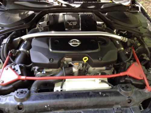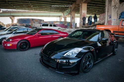 Here's the mod list. If it's not listed it has the OEM nismo part still. Bride Shift Boot Bride wrapped Center Console Seibon CF hood, custom painted and clear coated Painted door handles Rear Wiper delete Regular OEM 350z Bumper (06+) K&N drop in Filter Z1 motorsports intake tubes Berk High Flow cats. Urethane Exhaust Hangers(no rattle whatsoever) Custom Tune Wheels Are Eurotek U07's 19x9.5 et12 front 19x10.5 et22 Rear Tires are Advan neova ad08 front 225/35/19 Rears are Bridgestone Potenza's 265/35/19 One of the Rear Advan's got a nail close to the sidewall so I switched both rears to the Potenzas. The tires still have at least 80% on the rears and 70% on the fronts, all are evenly worn. Brembo Calipers With EBC Slotted Rotors EBC Yellow Stuff Brake pads Tanabe Pro 5 coils With Custom Rear Perches. Whiteline Sway Bar End Links Kinetix Front A Arms. Kinetix Rear Traction Arms and Camber Arms. Rear Diff brace. The car does need a little work. The Nismo V2 rep is no longer on the car. I was driving down RT 1 and I hit a blown out tire at night in a construction zone. No serious damage was done but the V2 bumper was shot and it cracked the rad support a little, but everything fixed professionally. So it has an OEM Nissan 350z bumper on now. But you can pick up another V2 rep just about anywhere for under $300 The clutch is getting low but still has plenty of life, One of the front wheels is Matte Black. The rest are gunmetal gray. One of the wheels was really badly curb rashed but I couldn't find another gunmetal gray one in my area, so I was just going to powder coat it but I like the way the one black rim looks. I also have an extra black rim that I will include as the right front has some pretty bad rash. Also One of the TPMS is out, so the dash tire pressure light is on. But its Very easy to replace the sensor. And lastly the car does have an R title, the car was crashed at around 27K and fixed and issued the R title shortly after. There is NOTHING wrong with it mechanically. I had my mechanics thoroughly inspect it and they said that it was perfect mechanically; I wouldn't have bought the car if it weren't. I've owned the car since around 40K. If you have any questions feel free to contact me. I have the title in hand and I'd like to sell the car soon. Also The car is listed locally, And I have the right to end the auction at any time. Thanks -- Dominic |