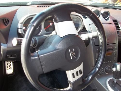 350Z is silver exterior with black interior, exterior is very nice with no noticeable dings or anything you would consider distracting. Car's front may have a chip here or there from highway mileage, as one would expect in a used car, but just look those pictures and you can tell this is a beauty. Tires are newer 235/35R20 with stylish rims. Car starts strong every time and runs like an Indy car, corners sharp and tight just like you'd expect. 350z's have a reputation for hugging those corners. Mechanically sound in every way, newer tint was put on the car this summer before he landed this job, replaced the hatch struts so they are brand new couple month's back, mileage is in the 129K range and he drives it every day until sold. Title is Arizona clear, in hand ready to sign over. If you've been wanting one of these sports cars, this would be a great way to enjoy high end performance without buying new! And before those questions come in..."can I drive it home?"...yes, I would be confident to drive anywhere in the United States you call home after winning the bid. My son drove it home this summer from Tempe, AZ with zero problems. Drove like a dream...and got a lot of looks doing so in this beautiful machine. 2003 Nissan 350Z is sold "as is/where is" from Kansas City, MO. No warranties or guarantees expressed or implied. You are buying exactly what you see pictured. Pickup of vehicle is entirely responsibility of winning bidder. Car must be paid for in cash or wired funds must "settle" at my bank before any title transfer takes place, no exceptions. Checks not accepted as payment. No PayPal on this specific sale, please, because of dollar amount. Once payment has been satisfied 100%, then we can discuss when and how to pick up car from present location. Easy to work with on that, if you need time to arrange transportation, I fully understand. Important thing is that car MUST be paid for in full within 5 business days of auction end or I go to next in line. Do not bid if you cannot or won't have funds available immediately after sale ends as I am looking for immediate sale, not long drawn-out procedure with you and your bank over financing. Just being honest and straight-forward from the beginning, thank you. The winner will love this car! |