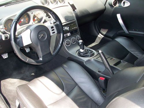 Hello, you are bidding on a 2003 Nissan 350Z Enthusiast with Only 57K Miles, 6 Speed with Black Leather. I have a clean title in hand, the car is adult owned, non smoker and garage kept. The interior is in Great Condition and the paint and body also looks very good. It runs and drives good as it should and the heat and AC work great. I recently replaced the oem clutch with a jim wolf technology clutch kit, it has a OEM stock feel. The wheels are made by Niche and have good toyo tires(there is some pits in the chrome on the wheels but mostly under the spokes and not very noticable). Overall the car is in great well kept condition.