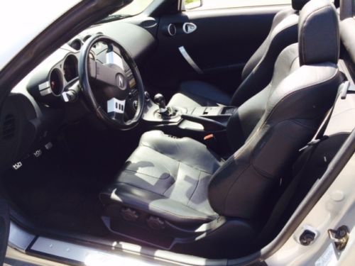 2004 NISSAN 350 Touring Roadster Convertible, 6 speed manual transmission, Chrome Silver color with black leather interior. Amazing condition, less than 26,000 miles, original owner, smoke free. Always garaged and pampered. Dealer serviced, MX records available. Dealer installed 18" wheels, floor mats, splash guards, aluminum kick plates and carpeted trunk mat. Must see to appreciate. Payment in full required. No personal financing available.