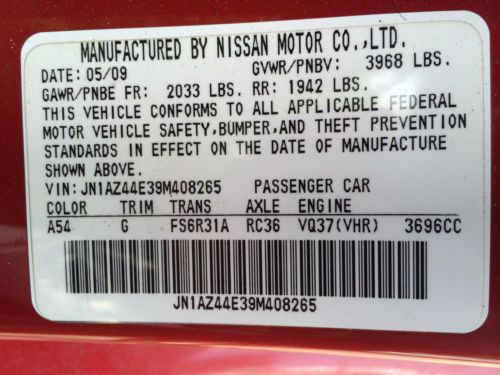 2009 nissan 370z touring coupe 2-door 3.7l 6-speed manual transmission(US $22,900.00)