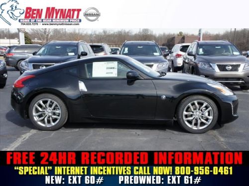Magnetic Black Metallic exterior and Black interior, 370Z trim. Heated Mirrors, iPod/MP3 Input, CD Player, [L94] CARPETED TRUNK MAT, [B92] PAINTED SPLASH GUARDS (4 PIECE)... [L92] CARPETED FLOOR MATS, Overhead Airbag. AND MORE!======KEY FEATURES INCLUDE: Heated Mirrors, iPod/MP3 Input, CD Player, Aluminum Wheels Keyless Entry, Steering Wheel Controls, Electronic Stability Control, Bucket Seats, Brake Assist. ======OPTION PACKAGES: CARPETED FLOOR MATS, BLACK, WOVEN CARBON CLOTH SEAT TRIM, MAGNETIC BLACK METALLIC, PAINTED SPLASH GUARDS (4 PIECE), CARPETED TRUNK MAT. 370Z with Magnetic Black Metallic exterior and Black interior features a V6 Cylinder Engine with 332 HP at 7000 RPM*. ======EXPERTS RAVE: Edmunds.com's review says Nissan's 2014 370Z two-seater continues to deliver impressive performance for the money. It's astoundingly capable, hyper-responsive and just plain fast.. ======VISIT US TODAY: Visit us Today! Dealer Award Winner for outstanding sales and service in the Charlotte region. We are one of North Carolina's Largest Certified Nissan Dealers. Our team is professional, offers you a no-pressure environment and operates with the quality you expect. Price includes all applicable rebates in lieu of special NMAC finance rates and may be based on purchaser's zip code at the time of purchase. Prices do not include taxes, tag, and $589 administrative fee. Horsepower calculations based on trim engine configuration. Please confirm the accuracy of the included equipment by calling us prior to purchase.