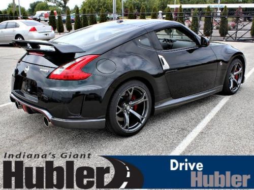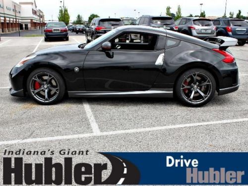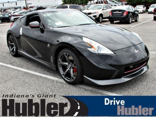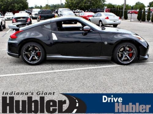 370Z trim, Magnetic Black Metallic exterior and Black interior. CD Player, iPod/MP3 Input, [L94] CARPETED TRUNK MAT, BLACK, WOVEN CARBON CLOTH SEAT TRIM, MAGNETIC BLACK METALLIC, Head Airbag, Aluminum Wheels. AND MORE!======KEY FEATURES INCLUDE: iPod/MP3 Input, CD Player Aluminum Wheels, Keyless Entry, Steering Wheel Controls, Heated Mirrors, Electronic Stability Control. ======OPTION PACKAGES: CARPETED TRUNK MAT, MAGNETIC BLACK METALLIC, BLACK, WOVEN CARBON CLOTH SEAT TRIM. 370Z with Magnetic Black Metallic exterior and Black interior features a V6 Cylinder Engine with 332 HP at 7000 RPM*. ======EXPERTS REPORT: Edmunds.com's review says Nissan's 2014 370Z two-seater continues to deliver impressive performance for the money. It's astoundingly capable, hyper-responsive and just plain fast.. ======OUR OFFERINGS: After more than 50 years in business, The Hubler Auto Group, through the power of ten central Indiana locations, has literally sold hundreds of thousands of vehicles and is one of the oldest and most prolific auto dealers in the State employing 550 people. The Hubler Auto Group can claim the title for selling more G.M. vehicles in the State of Indiana than any other dealer or dealer group, and has earned the right to brag of having the largest and most loyal customer Horsepower calculations based on trim engine configuration. Please confirm the accuracy of the included equipment by calling us prior to purchase. Hubler Nissan is committed to providing the finest automotive ownership experience through superior customer service. Let us make you a "Customer for life". We have 99% Guaranteed Credit Approval! For more details or to schedule an appointment, call us at 888-548-9398.