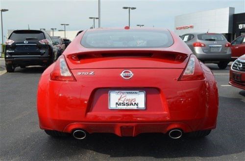 Featuring a sleek and sporty exterior, the Nissan 370Z comes available as a coupe or a roadster and is equipped with 18 aluminum-alloy wheels. The taillights on the 370Z have 10 LED lights stacked in a pyramid shape to enhance visibility and you can make a visual statement with powerful LED Daytime Running Lights. The interior features a Leather-wrapped steering wheel and an 8-way adjustable driver's seat. The Nissan Intelligent Key lets you tap a button on the door handle to unlock your Z, while your keys stay in your pocket. Once inside the vehicle, the Push Button Ignition allows you to start the 370Z with ease. Hear the sound of 332 pure horsepower through a tuned exhaust in your new Nissan 370Z. Powered by the 4th-generation VQ V6 engine capable 7500-rpm, the 370Z also offers the choice of either a 6 speed close-ratio manual transmission, or a 7-speed automatic transmission with Downshift Rev Matching. A low center of gravity and a wide stance give it ultra-responsive handling and enhanced cornering. The relatively short wheelbase and overall length of the 370Z make for incredible maneuverability, while 12.6 front and rear rotors and calipers ensure maximum stopping power Settle in, turn up the volume and enjoy the ride. The standard AM/FM/CD audio system pumps through four speakers and features an auxiliary input to hook up your iPod. Automatic Temperature Control will maintain the climate by automatically adjusting fan speed and climate control Keeping you safe while looking great, the 370Z has a broad range of safety features. Active Head Restraints help reduce the chance of whiplash injuries and the Tire Pressure Monitoring System ensures maximum tire life by keeping you informed. The Nissan Advanced Air Bag System features dynamic air bag inflation depending on crash severity and seat belt usage. Customization is limitless as the 370Z boasts a gamut of accessories that range from heightening aesthetics to boosting performance. ****KINGS NISSAN INTERNET SPECIAL'S**** CALL TOLL FREE 888-454-8431 TO RECEIVE ADDITIONAL SAVINGS PLUS LIFETIME FREE CAR WASHES. FOR MORE INFORMATION ON THESE SPECIALS AND MANY OTHERS CALL TODAY AND ASK FOR SALES OR EMAIL US AT internetsales@kingsnissancincinnati.com
