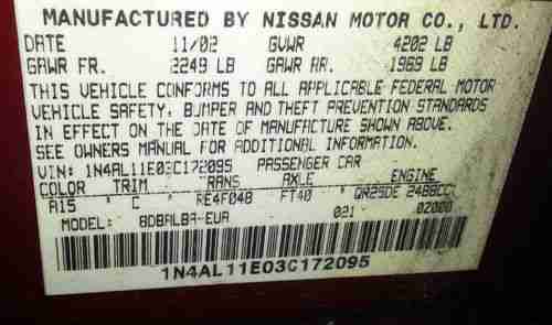 YOUR BIDDING ON A 2002 NISSAN ALTIMA,FULL POWR ,SPETIAL EDITION.INTERIOR IS CLEAN,EXTERIOR IS FAIR,SMALL DENTS AND LIGHT SCRACHES,NO MAJOR DENTS OR ACCIDENTS.4 DISC BRAKES,ALLOY RIMS,CRUISS CONTROL,CD CONTROL FROM STEERING WHEEL ENGINE IN EXCELLENT CONDITIONS.CLEAN TITLE,TIRES ARE FAIR.PASSS NYS INSPECTION.NO ODORS OR RIPS OR STAINS.COMES WITH A FACTORY ALARM. THIS IS A NO RESERVE AUCTION!!! HIGHEST BIDDER TAKES HER HOME!!! THIS CAR IS "SOLD AS IS" AND WILL BE GOING THROUGH A FRIEND OF MINE THAT HAS A DEALRSHIP ,AND WILL BE PROVIDING ALL PAPERWORK NECESERY SUCH AS TAX,REGISTRATION,PLATES AND TITLE TRANSFER.GOOD LUCK AND THANKS FOR BIDDING