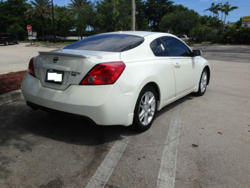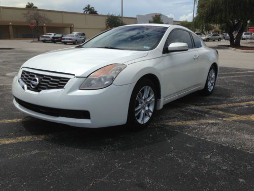 White pearl exterior and beige leather interior Nissan Altima coupe 3.5 ES. This car has been great to me always maintained and regular tune ups on time no issues ever. It fits 4-5 people comfortably. It is actually a very big back seat for a coupe,also has a huge trunk for a coupe. I recently had the leather conditioned and the car detailed to sell it. Needless to say it has been babied all these years. The paint has a few nicks and scratches from normal wear and tear. This is the special edition version Altima coupe it is equipped from Factory with hid automatic head lights, key less entry,push button start,leather interior,heated seats, oak wood grain, factory state of the art Bose surround sound system that includes: Satellite touch screen Navigation with traffic alerts, cruise control, phone connection and voice activated dialing, voice command, 6 disc cd, cdrw, DVD player, Bluetooth, satellite radio and Rear view Camera. This car really is a beauty. Serious buyers only 786-479-2626 |